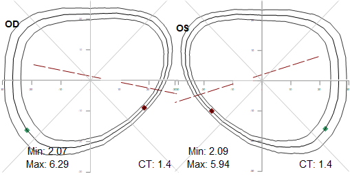 Trifocal: Vision correction for three viewing distances (distance, intermediate, and near) combined into one lens design. Two lines per lens, rather than one. No round segment options available.
